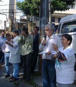 14/06/11- “O Hospital Municipal Piedade está sendo sucateado e isso é um crime!”. A afirmativa é do dr. Mário Costa, vice-presidente do Corpo Clínico da instituição. A solução é a “refederalização”, disse, em seguida ao abraço realizado ontem, em frente ao Hospital, por médicos, funcionários, pacientes, parlamentares e entidades como a SBP, o Conselho Regional de Medicina (Cremerj), o Conselho de Enfermagem, a Sociedade de Ginecologia e Obstetrícia e o Sindicato dos Trabalhadores Públicos Federais em Saúde e Previdência Social (Sindisprev) do Rio de Janeiro. “A situação está muito clara. O prefeito esteve lá há cerca de um ano e constatou o caos. Mas nada ocorreu depois disso. Ao contrário, as coisas só pioraram. O Piedade é um Hospital de ensino e tem todas as características para voltar para a esfera federal. O Governo precisa assumir esta responsabilidade”, salientou.