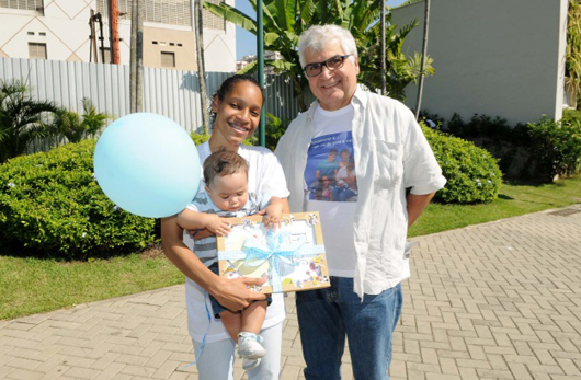 – Este é um evento simbólico. É importante a sociedade se conscientizar de que a amamentação e o cuidado com as crianças são responsabilidade de cada um de nós e não apenas das mães. Parabéns! – disse o presidente da SBP para Natália e sua família.Com o bom exemplo de uma família brasileira que apoia o aleitamento materno , a SBP e a Soperj lançaram, no último sábado, em Madureira, Zona Norte do Rio de Janeiro, a campanha “Amamentar é… mais saúde para a vida inteira!”. O dr. Eduardo Vaz agradeceu à Natália dos Reis Carvalho, 19 anos, que, juntamente com o marido Andersson Torres, 20, com a mãe Maria Aparecida dos Reis, Cida, 41 e com a irmã, Monique Victória Dias dos Reis, 15 anos, posou para o material com seu filho Murilo, de oito meses.