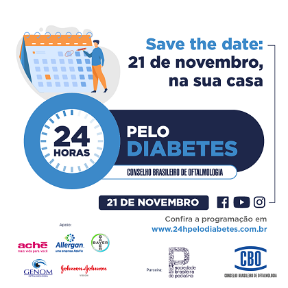 O que o diabetes tem a ver com a visão? Tudo! Com o objetivo de esclarecer essa e outras dúvidas sobre a doença e de como proteger a saúde dos olhos, o Conselho Brasileiro de Oftalmologia (CBO) – com o apoio da Sociedade Brasileira de Pediatria (SBP) e entidades parceiras – realizará, no dia 21 de novembro (sábado), uma maratona de atividades em suas mídias sociais.