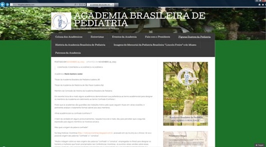 Um espaço para a divulgação das ações da Academia Brasileira de Pediatria (ABP), das ideias de seus integrantes e das “coisas bonitas que existem no Memorial da Pediatria Brasileira Lincoln Freire”. Assim o dr. José Martins Filho, que assumiu a presidência da ABP em outubro, em Curitiba, define o “Blog oficial”, recentemente criado. “Eu e Reinaldo (Martins, atual secretário da ABP) discutimos essa necessidade desde a formação da chapa para a diretoria”, diz. O objetivo principal é dar “boa visibilidade sobre o que pensamos a respeito dos problemas que ocorrem com nossas crianças” e, de fato, “temos publicado textos, vídeos, mensagens diversas”, salienta.