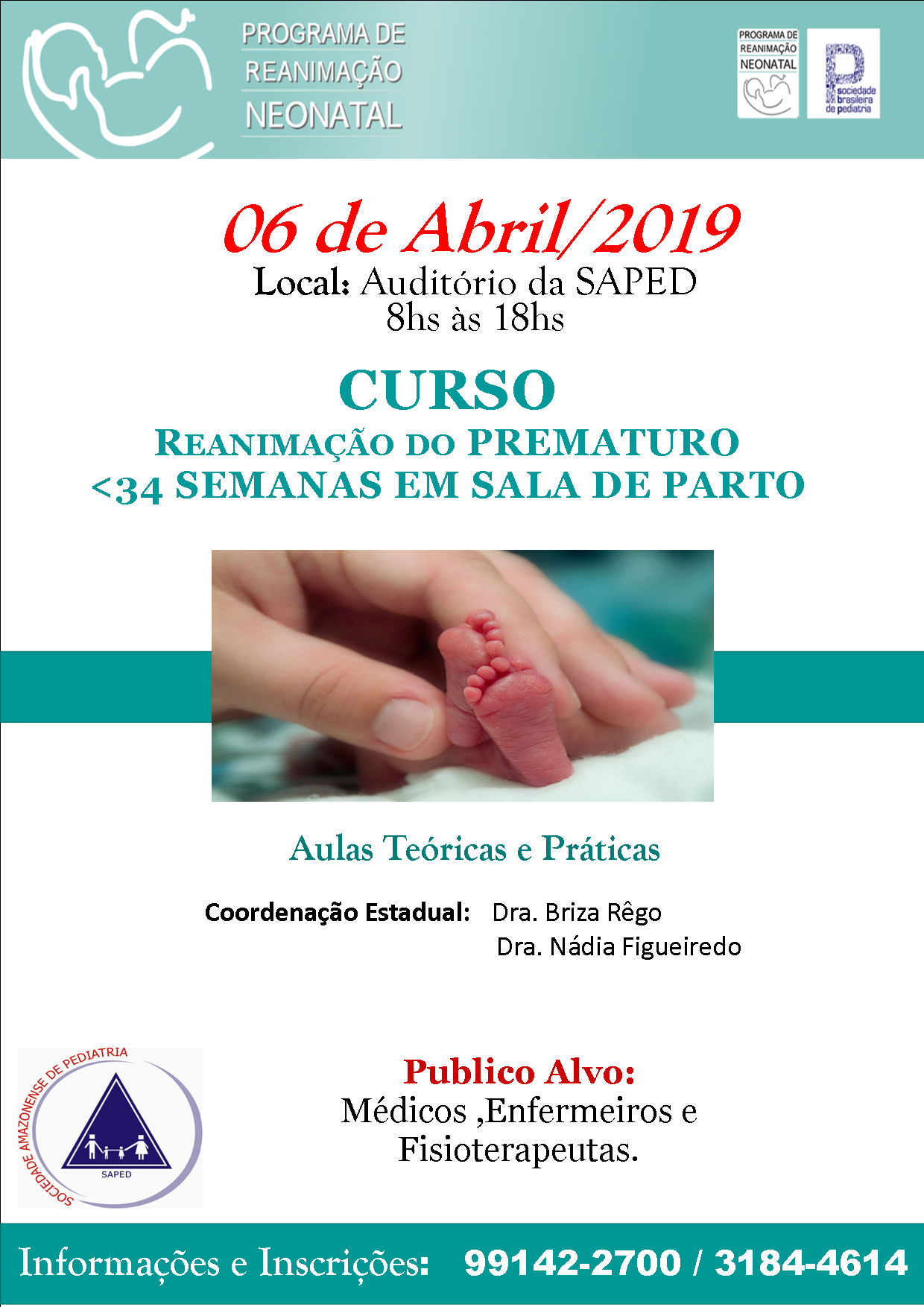 Pré-requisito para inscrição: aprovação no Curso de Reanimação Neonatal da SBP – diretrizes 2016 (informação disponível em www.sbp.com.br/reanimação – certificados)