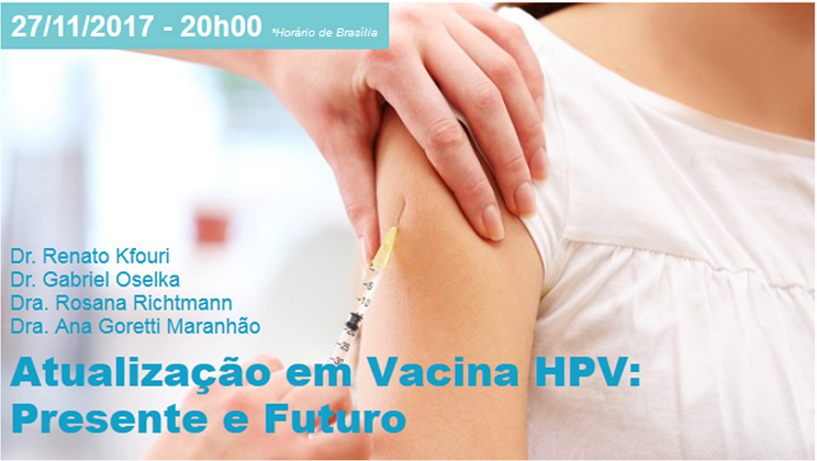Na próxima segunda-feira (27), às 20h (horário de Brasília), acontecerá mais um Encontro de Atualização em Vacinas, promovido pelo Departamento Científico de Imunizações da Sociedade Brasileira de Pediatria (SBP). Com o tema “Atualização em Vacina HPV: Presente e Futuro”, a palestra abordará questões como a importância da vacinação em meninos e meninas; o esquema de doses; e as coberturas vacinais. Além de contar com vinte minutos de debate com os internautas.