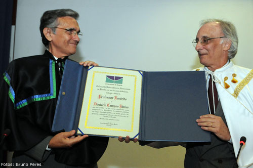 Depois de entregar o título, o reitor José Geraldo de Sousa Júnior registrou a importância da honraria e, bem-humorado, disse que “Dioclécio também poderia receber a distinção de ‘mestre de obras’ emérito”, se referindo à construção do Instituto da Criança e do Adolescente (ICA) da Universidade, que deve ser inaugurado em 2013.