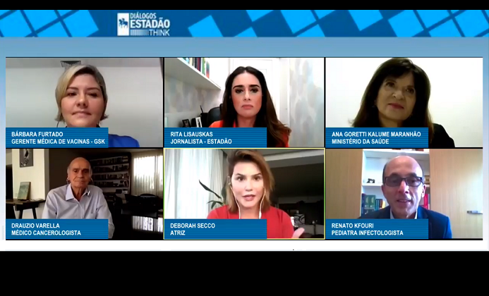 O debate, mediado pela jornalista Rita Lisauskas, contou também com a participação dos drs. Drauzio Varella, médico oncologista; Bárbara Furtado, pediatra e gerente médica da GSK; Ana Goretti, do Programa Nacional de Imunizações (PNI) do Ministério da Saúde; e da atriz Deborah Secco.
