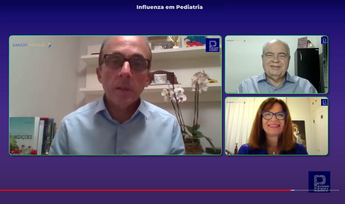 A influenza em tempos de pandemia foi o tema de mais uma live realizada pela Sociedade Brasileira de Pediatria (SBP) na última segunda-feira (29), com transmissão exclusiva pelo site da instituição, com o apoio da Sanofi Pasteur. O debate teve a participação do presidente do Departamento Científico de Imunizações da SBP, dr. Renato Kfouri; do pediatra, epidemiologista e mestre em Medicina Tropical, dr. José Geraldo Leite Ribeiro; e da especialista em pediatria do Programa Nacional de Imunização (PNI) do Ministério da Saúde, dra. Ana Goretti Kalume.
