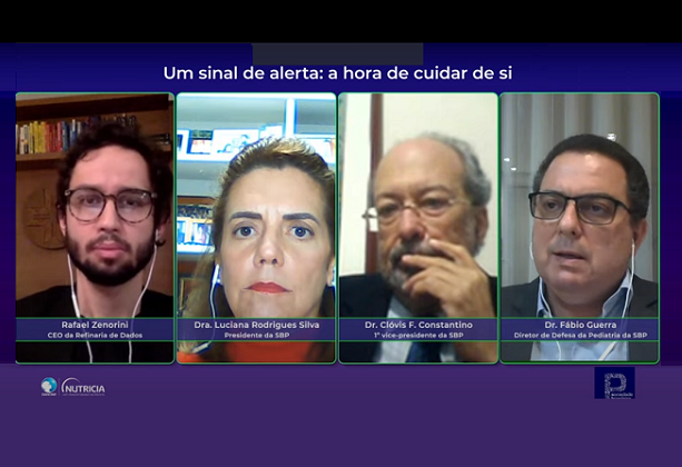 Reflexões sobre a pandemia do novo coronavírus (COVID-19) e o estresse causado aos profissionais de saúde foram debatidas na última terça-feira (13), na live “Um sinal de alerta: hora de cuidar de si”, promovida pela Sociedade Brasileira de Pediatria (SBP) em parceria com a Danone Nutricia. O evento, transmitido ao vivo pelas redes sociais da SBP, contou com a participação da dra. Luciana Rodrigues Silva e do dr. Clóvis Constantino, presidente e 1º vice-presidente da instituição, respectivamente; dr. Fábio Guerra, diretor de Defesa Profissional da SBP; e Rafael Zenorini, CEO da Refinaria de Dados.