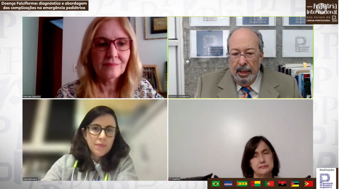 O último webinar de 2023 do Grupo Pediatria Internacional dos Países de Língua Portuguesa da Sociedade Brasileira de Pediatra (SBP) debateu o tema “Doença Falciforme: diagnóstico e abordagem das complicações na emergência pediátrica”. Com transmissão aberta pelo site, Facebook e Youtube da SBP, o encontro contou com fala de abertura conduzida pelo presidente da SBP, dr. Clóvis Francisco Constantino, e foi moderado pela dra. Marisa Oliveira, representante de Portugal e especialista da Unidade de Hematologia do Hospital Dona Estefânia no Centro Hospitalar Lisboa Central.