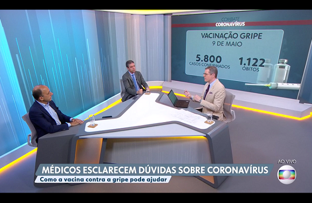 Na manhã desta segunda-feira (23), os presidentes dos Departamentos Científicos de Imunizações e Infectologia da Sociedade Brasileira de Pediatria (SBP), drs. Renato Kfouri e Marco Aurélio Sáfadi, respectivamente, participaram ao vivo do programa "Combate ao Coronavírus", da Rede Globo. A produção é apresentada pelo jornalista Márcio Gomes e tem como objetivo apresentar diariamente os diversos aspectos da COVID-19 e atualizar a população acerca dos acontecimentos nacionais e internacionais relacionados ao tema.