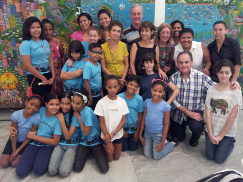 As crianças do Coral, com familiares, a maestrina, o acadêmico Dias Rego e a museóloga Tatiana Castellani, no evento Arte em Laranjeiras e Cosme Velho, em outubro, no Museu de Arte Naïf, Rio de Janeiro |