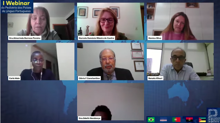 A prematuridade foi o tema central do I Webinar da Pediatria dos Países de Língua Portuguesa, realizado entre 28 e 29 de novembro, com transmissão aberta pelo site, Facebook e Youtube da Sociedade Brasileira de Pediatria (SBP). O encontro reuniu especialistas de Brasil, Portugal, Angola, Cabo Verde e Moçambique e marcou o início da troca científica entre os países lusófonos. Os participantes desta primeira edição foram indicados por representantes do Grupo Pediatria Internacional dos Países de Língua Portuguesa, da SBP, sob a coordenação da dra. Marcela Damásio Ribeiro de Castro, que mediou o primeiro dia do evento virtual.