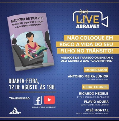 Estimular a conscientização sobre a importância do uso da “cadeirinha”, equipamento de segurança obrigatório para retenção de crianças durante os deslocamentos de carro. Esse é o mote do debate aberto ao público, promovido pela Associação Brasileira de Medicina de Tráfego (Abramet), na próxima quarta-feira (12), às 19h, por meio do Facebook e YouTube.