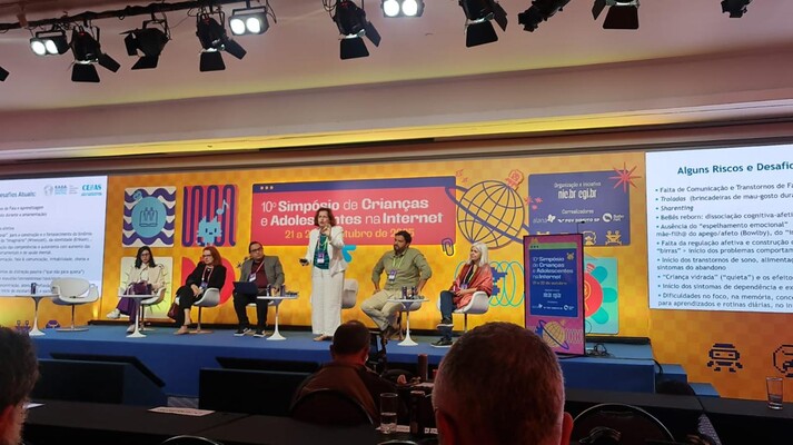 Discutir os desafios relacionados ao acesso de crianças e adolescentes ao mundo digital foi o intuito central do 10º Simpósio de Crianças e Adolescentes na Internet, realizado em São Paulo (SP), pelo Comitê Gestor da Internet no Brasil (CGI.br) e pelo NIC.br. O evento contou com a participação da coordenadora do Grupo de Trabalho de Saúde Digital da Sociedade Brasileira de Pediatria (SBP), dra. Evelyn Eisenstein. Na ocasião, a especialista integrou os debates do painel sobre “Primeira infância e os primeiros acessos online: desafios e riscos do acesso às TIC por crianças de 0 a 8 anos”.