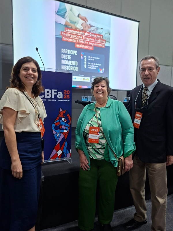 A Sociedade Brasileira de Pediatria (SBP) marcou presença no painel "Aumentando a cobertura da TANU no Brasil: diretrizes e ações", realizado durante o 33º Congresso Brasileiro de Fonoaudiologia, em São Paulo (SP). Representando a entidade, estiveram presentes a dra. Lilian Sadeck, 1ª vice-presidente da entidade, além dos drs. Renata d'Francesco e Manuel de Nobrega, presidente e secretária do Departamento Científico de Otorrinolaringologia da SBP, respectivamente.