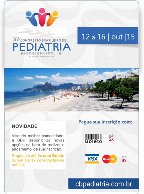 Os trabalhos científicos para o CBP poderão ser apresentados até 19 de julho. As normas estão disponíveis. Sobre as vantagens da inscrição antecipada, pode ser realizada em duas parcelas no boleto bancário ou em três vezes no cartão de crédito. As vagas são limitadas! Saiba mais, pelo WWW.sbp.com.br ou http://www.cbpediatria.com.br/ e participe!