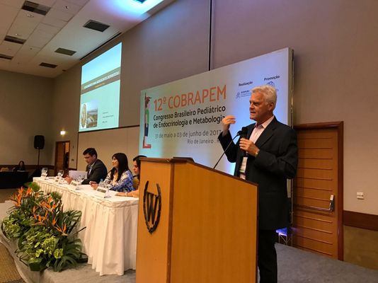 A programação incluiu ainda um espaço para a realização do Simpósio Internacional “Crescimento”, presidido pelo dr. Alexander Augusto de Lima Jorge (SP). Nessa temática, foram apresentadas as palestras “Sociais pressures: seeking GH to make children and adolescentes taller”, com a dra. Adda Grimberg (EUA); Fármaco genética do tratamento com RHGH, com a dra. Adrian Farrant Braz (PB) e “Fundamental mechaminsms limiting childhood growth”, com o dr. Jeffrey Baron (EUA). A sessão “Tirando dúvidas” trouxe discussões de dúvidas teóricas sobre nódulos de tireóide e obesidade e dislipidemia.