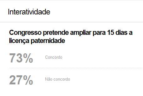 Reportagem veiculada nesta quarta-feira no Jornal Hoje, da TV Globo, discute a ampliação da licença-paternidade para 15 dias. O diretor de Assuntos Parlamentares da SBP, dr. Dioclécio Campos Jr., foi entrevistado. O projeto de lei, da senadora Patrícia Saboya, é fruto da campanha da licença-maternidade, já foi aprovado pelo Senado e está agora da Câmara. Na enquete realizada pela emissora, 73% apóiam a proposta. Clique aqui e assista a íntegra.