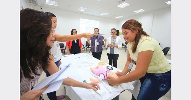 Enfermeiros, técnicos e auxiliares de enfermagem da Femina Hospital Infantil e Maternidade participaram do curso de “Reanimação neonatal”, certificado pela Sociedade Brasileira de Pediatria (SBP), no último fim de semana (10).