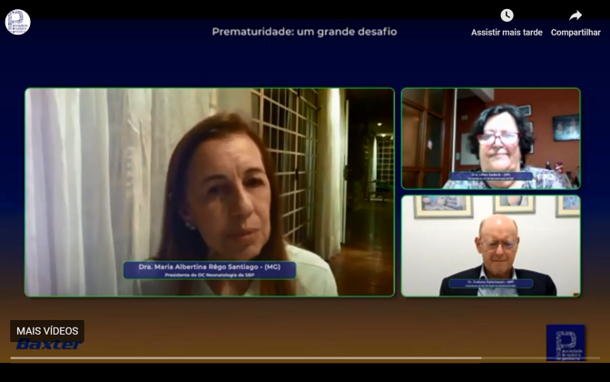 Na oportunidade, à frente das explanações técnicas, os espectadores acompanharam especialistas com ampla experiência na área, como a dra. Maria Albertina Santiago Rego, presidente do Departamento Científico de Neonatologia da SBP; e dr. Rubens Feferbaum, presidente do Departamento Científico de Suporte Nutricional da SBP.