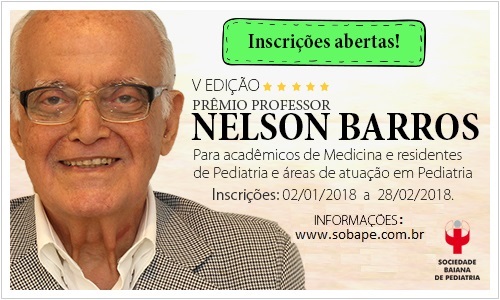 HISTÓRIA – Criado em 2013, o Prêmio Professor Nelson Barros é um reconhecimento à memória do fundador e primeiro presidente da Sobape, o professor emérito da Universidade Federal da Bahia (UFBA) e pediatra Nelson Barros, que faleceu em março de 2014.