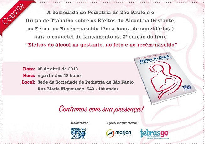 No próximo dia 5 de abril, a Sociedade de Pediatria de São Paulo (SPSP) promoverá, na sede da instituição, o lançamento da segunda edição do livro “Efeitos do álcool na gestante, no feto e no recém-nascido”, produzido pelo Grupo de Trabalho homônimo. A publicação, que está em sua 2ª edição, foi atualizada e inclui novos capítulos e conceitos sobre o tema, escrito por membros do grupo de trabalho, sob a coordenação da Prof. dra. Conceição Segre, coordenadora de Campanhas da Sociedade Brasileira de Pediatria (SBP) e também da campanha nacional Gravidez sem Álcool.