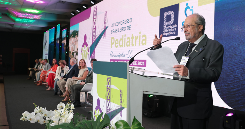 Um auditório atento e lotado acompanhou a cerimônia de abertura do 41º Congresso Brasileiro de Pediatria (CBP), em Florianópolis (SC), na quarta-feira (23). Durante a solenidade, o presidente da Sociedade Brasileira de Pediatria (SBP), Clóvis Francisco Constantino, relembrou a luta histórica da entidade, fundada há mais de um século, em 1910, em prol da saúde e do bem-estar das crianças e dos adolescentes.