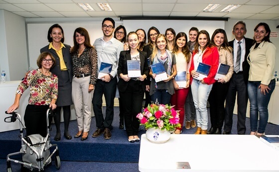 Os diretores da SBP, Sandra Grisi e Dioclécio Campos Jr., em maio de 2015, com preceptores e residentes dos programas de Florianópolis – o Hospital Infantil Joana de Gusmão e o Hospital Universitário da UFSC.