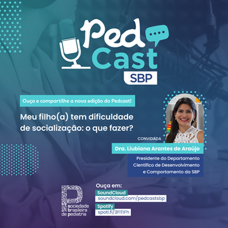 O PedCast SBP desta semana aborda o tema “Meu filho tem dificuldade de socializar: o que fazer?”. O episódio é conduzido pela presidente do Departamento Científico de Pediatria do Desenvolvimento e Comportamento da Sociedade Brasileira de Pediatria (SBP), dra. Liubiana Arantes de Araújo.