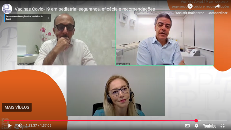 A Sociedade Brasileira de Pediatria (SBP) promoveu em fevereiro uma live exclusiva aos seus associados para tratar do estado atual das vacinas para covid-19 para a população pediátrica. Intitulado “Vacinas Covid-19 em pediatria: segurança, eficácia e recomendações”, o webinar congregou especialistas do Departamento Científico (DC) de Imunizações e Infectologia da instituição.