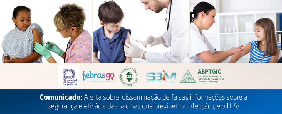 As Sociedades Brasileiras de Pediatria (SBP), Imunizações (SBIm), Infectologia (SBI), a Federação Brasileira das Associações de Ginecologia e Obstetrícia (Febrasgo) e a Associação Brasileira de Patologia do Trato Genital Inferior e Colposcopia (ABPTGIC) divulgaram comunicado para reforçar a segurança e eficácia da vacina HPV, que é alvo constante de boatos e fake news.