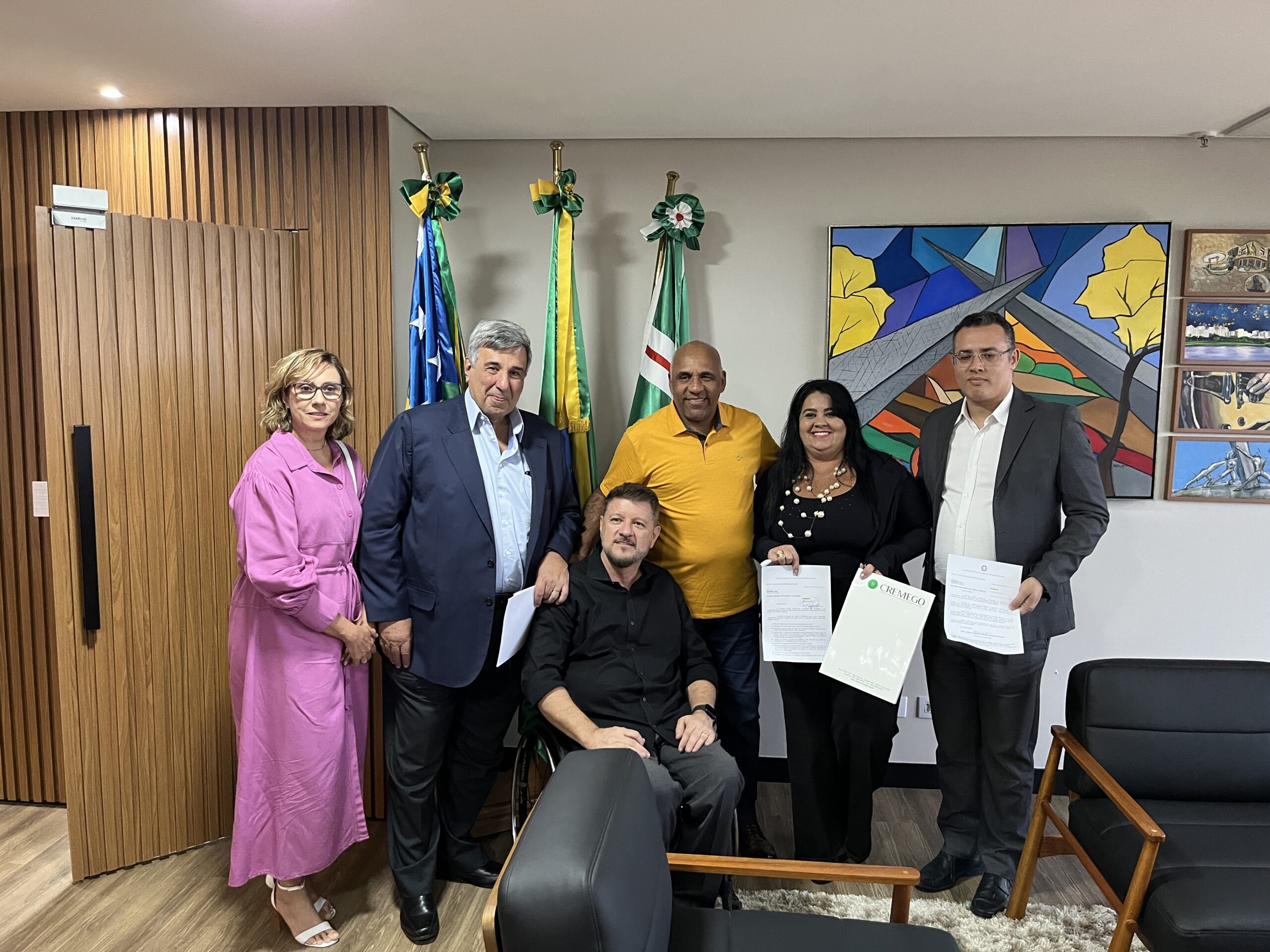 Na reunião também estavam presentes a presidente do Cremego, Sheila Lustosa, o secretário municipal de saúde, Wilson Pollara, o vice-presidente da Associação Psiquiátrica de Goiás, Tiago Batista, e o vereador Willian Veloso (PL).