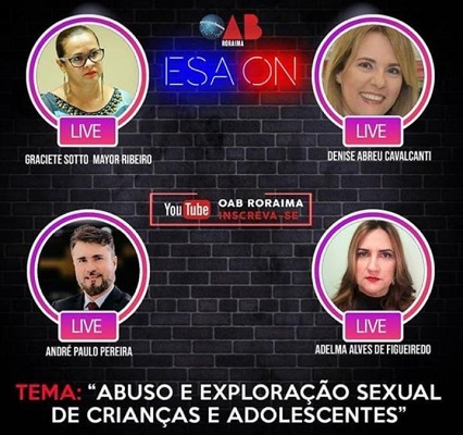 A Ordem dos Advogados do Brasil – Seccional de Roraima (OAB/RR) promoveu uma webconferência para debater aspectos relacionados ao abuso e à exploração sexual da população infantojuvenil no Brasil. A apresentação, transmitida por meio do YouTube, fez parte das atividades em alusão ao 18 de maio – Dia Nacional de Combate ao Abuso e à Exploração Sexual de Crianças e Adolescentes.