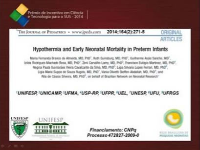 A Rede Brasileira de Pesquisas Neonatais, em trabalho liderado pelas coordenadoras do Programa de Reanimação Neonatal da SBP, Ruth Guinsburg e Maria Fernanda Almeida, conquistou o Prêmio de Incentivo em Ciências e Tecnologia para o SUS – 2014, na categoria artigo publicado, com a pesquisa: “Hipotermia e mortalidade neonatal precoce em recém-nascidos prematuros”. A premiação com o anúncio dos vencedores ocorreu durante o evento “Ciência, Tecnologia e Inovação em Saúde: resultados e avanços de pesquisas estratégicas para o SUS”, ontem, 12 de novembro, em Brasília.