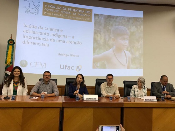 Na manhã desta quinta-feira (10), o V Fórum de Pediatria do Conselho Federal de Medicina (CFM), realizado durante o 39º Congresso Brasileiro de Pediatria (CBP), em Porto Alegre (RS), trouxe para o centro dos debates o tema "Saúde da criança indígena". Moderada pela secretária-geral do CFM, dra. Dilza Teresinha Ambros Ribeiro, a mesa-redonda contou com a participação de vários especialistas da área, que apresentaram reflexões sobre a atual assistência em saúde fornecida pelo poder público aos povos de diferentes etnias.