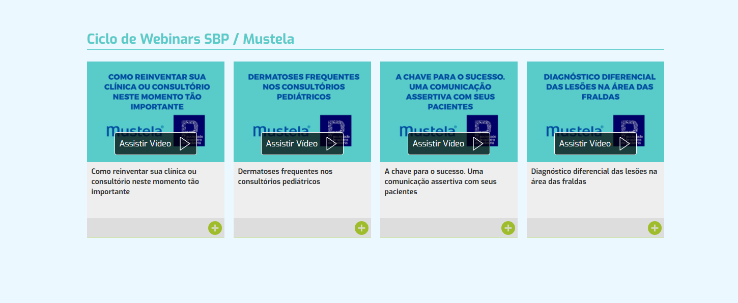 Já estão disponíveis para acesso as aulas do ciclo de webinars de Gestão e Atualização, promovido pela Sociedade Brasileira de Pediatria (SBP) em parceria com a Mustela. As quatro edições englobaram os seguintes temas: “Como reinventar sua clínica ou consultório neste momento tão importante”; “Dermatoses frequentes nos consultórios pediátricos”; “A chave para o sucesso: uma comunicação assertiva com seus pacientes”; e “Diagnóstico diferencial das lesões na área das fraldas”, todas ministradas por renomados especialistas. Veja a seguir um resumo de cada uma delas.