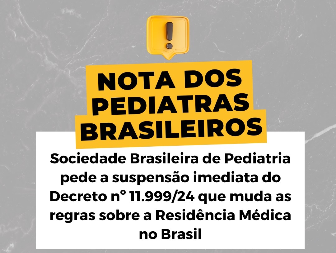 O Brasil, a Medicina e a Saúde Pública não merecem que essa lógica prevaleça. Diante desse cenário, a Sociedade Brasileira de Pediatria (SBP), reunida com os 27 presidentes das filiadas estaduais (incluindo o Distrito Federal) e representantes da Academia Brasileira de Pediatria (ABP), assim como em nome de 43 mil especialistas na saúde da infância e adolescência, apela para que as autoridades de todos os Poderes, comprometidas com o exercício de uma Medicina com lastro na excelência e no rigor técnico, atuem pela suspensão imediata dos efeitos do Decreto nº 11.999/24.