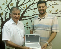 Os dois últimos ganhadores da terceira série do sorteio, os drs. Fernando Resende Facury (de Goiânia/ GO) e Sônia Maria Rita Correa Martinez (de Santo André/SP) receberam osnetbooks em abril, na sede da Sociedade Goiana de Pediatria, entregue pelo presidente da filiada, dr. Roque Gomide Fernandes (foto), e na Fundação SBP, em São Paulo, das mãos do dr. Eduardo Vaz (foto), respectivamente.