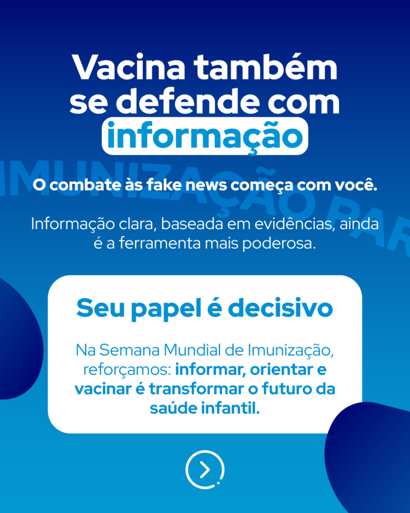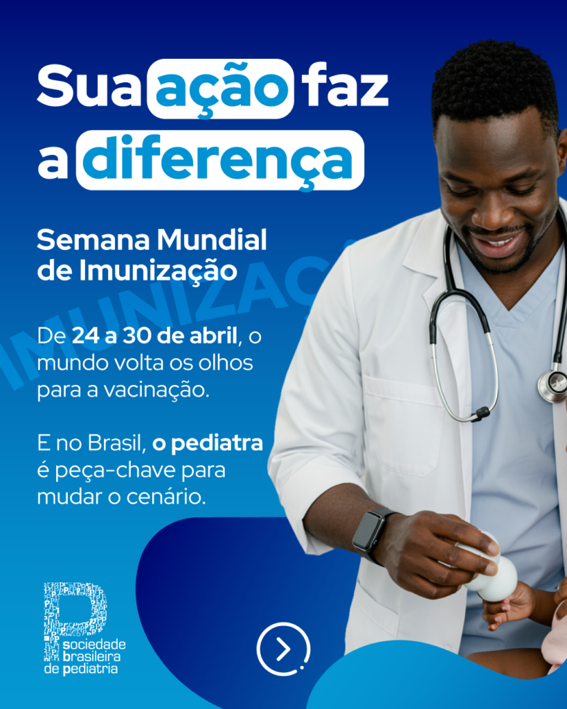 A última semana de abril marca, anualmente, a Semana Mundial de Imunizações, dedicada à conscientização sobre o papel da vacinação na proteção da saúde ao longo da vida. Em 2026, entre os dias 24 à 30 deste mês a Sociedade Brasileira de Pediatria (SBP), por meio de seu Departamento Científico de Imunizações, promoverá uma série de ações nas redes sociais, com vídeos e cards informativos voltados a pediatras e ao público em geral.