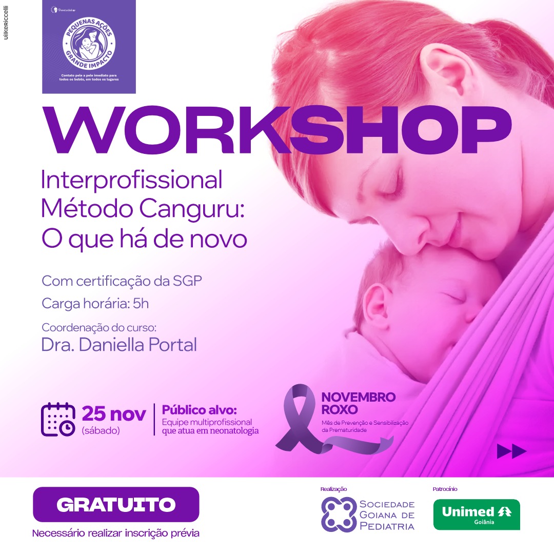 A Sociedade Goiana de Pediatria, com apoio da Unimed Goiânia, oferece neste sábado (25) o workshop interprofissional Método Canguru: O que há de novo. A ação, que é voltada para profissionais que atuam na neonatologia, acontece na sede da SGP a partir das 07h30min.