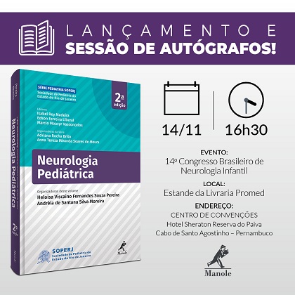 A Sociedade de Pediatria do Estado do Rio de Janeiro (SOPERJ), em parceria com a Manole Editora, lança nesta quinta-feira (14), durante o 14º Congresso Brasileiro de Neurologia Infantil, em Cabo de Santo Agostinho (PE), a segunda edição do livro “Neurologia Pediátrica”. A sessão de autógrafos será às 16h30, no Estande da Livraria Promed, no Hotel Sheraton Reserva do Paiva.