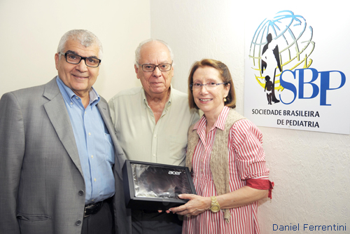 Dr. Maurício Gonzaga recebeu, do presidente, dr. Eduardo Vaz e dra. secretária-geral, dra. Marilene Crispino, o 8ª tablet oferecido pela Sociedade, na quarta série do sorteio que vem sendo realizado entre os associados. A entrega ocorreu no último dia 22, na sede da entidade, no Rio de Janeiro.