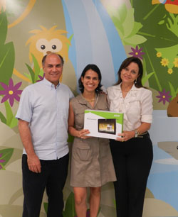 O 11º tablet sorteado foi para a dra. Michele Spencer, de Brasília, especialista com área de Atuação em Endocrinologia Pediátrica. O presente foi entregue pela presidente da Sociedade de Pediatria do Distrito Federal (SPDF), dra. Elisa de Carvalho, e pelo vice-presidente, dr. Luiz Claudio Castro, na sede da filiada, no final de março. Contente, a ganhadora comentou sobre a importância e a facilidade proporcionada pelos novos aparelhos: “hoje em dia nos atualizamos muito pela internet. Para nós, pediatras, esses sistemas mais modernos são muito úteis, nos auxiliam na própria consulta, com informações que podem ser transmitidas ao paciente”.