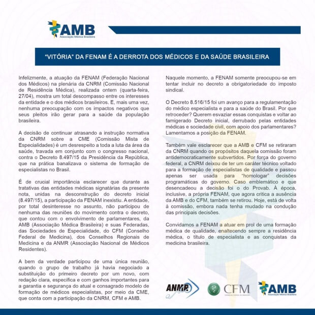 Notícia | SBP em Ação | 11/09/2015 Decreto 8.516 é publicado e garante vitória dos médicos Notícia | Saiu na imprensa | 27/08/2015 Novo decreto ainda aguarda assinatura da Presidência da República e deve ser publicado nos próximos 15 dias Notícia | SBP em Ação | 24/08/2015 SBP, AMB e demais entidades pedem apoio aos parlamentares para que novo texto do Decreto 8497 seja cumprido Notícia | Saiu na imprensa | 21/08/2015 Decreto 8.497/2015 não interferirá mais na formação dos médicos especialistas Notícia | Saiu na imprensa | 20/08/2015 Decreto 8.497 deve ficar restrito ao Cadastro Nacional de Especialistas Notícia | SBP em Ação | 14/08/2015 SBP alerta para o perigo que o Decreto 8497 representa. Notícia | Saiu na imprensa | 14/08/2015 Após pressão, governo promete reescrever decreto sobre especialização médica Notícia | Saiu na imprensa | 14/08/2015 Com ação das entidades médicas, Governo promete reescrever Decreto sobre especialistas Notícia | Saiu na imprensa | 14/08/2015 Lideranças médicas discutem Decreto nº 8497/2015 e apresentam dados sobre a formação de especialistas no Brasil Notícia | Saiu na imprensa | 14/08/2015 AMB orienta médicos a convocarem representantes parlamentares na derrubada de Decreto 8.497/2015 Notícia | Comunicações Públicas | 10/08/2015 Em defesa das crianças. SBP diz não ao Decreto nº 8.497! Notícia | Saiu na imprensa | 10/08/2015 Esclarecimento a Sociedade Brasileira Notícia | Saiu na imprensa | 10/08/2015 AMB esclarece Notícia | Saiu na imprensa | 10/08/2015 Decreto nº 8.497 – Qual a real intenção do Governo Federal?